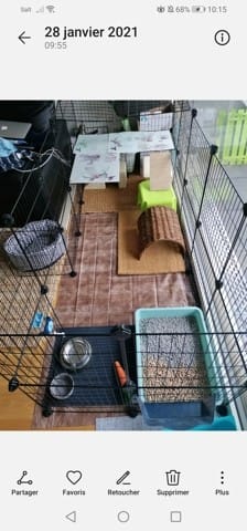 Super enclos il vont super bien s'amuser ! Mais l'étage et eut être de trop vue qu'il doivent être encore petit! Mais par la suite quand il seront un peu plus grand tu pourras le rajouter l'étage ou même des arbre a chat (ils adore grimper dessus)