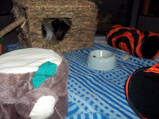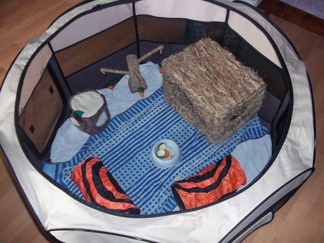 Et une idée de Anaiiys c'est de mettre du foin sur un bac en plastique pour que le chon essaye de l'attraper et de le manger tout en s'amusant