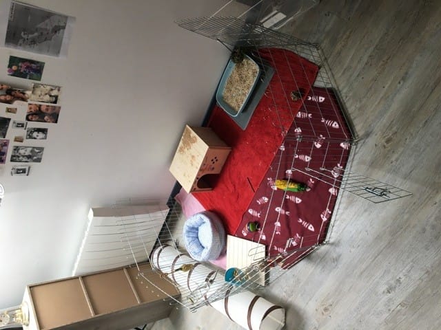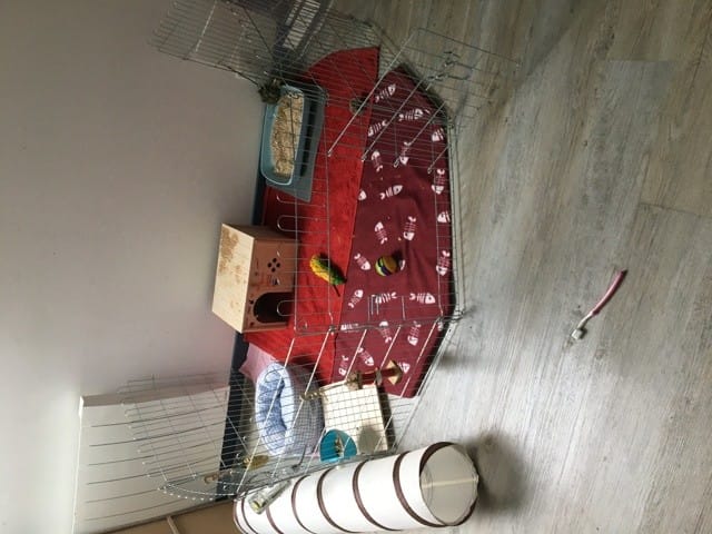 Bonjour J’ai une petite lapine qui se nomme galaxy et qui est âgée de 4 ans je l’ai eu beaucoup trop jeune je trouve et pendant trois ans elle a vécu dans une cage à lapin je me suis rendu compte il y a déjà quelques temps que les cages n’était pas correct pour les lapins donc je Les mises en totale liberté la journée dans ma chambre mais la nuit malheureusement j’étais obligé de fermer sa cage car sinon Impossible de dormir aujourd’hui je viens juste de passer à l’enclos (photo) je ne sais pas si c’est assez bien pour elle mais je fais ce que je peux et je laisse le maximum de temps l’enclos ouvert mets le soir je suis obligé de fermer mais j’aimerais dit si je laisser l’enclos totalement ouvert comment dois-je faire ? Est-ce bien ?