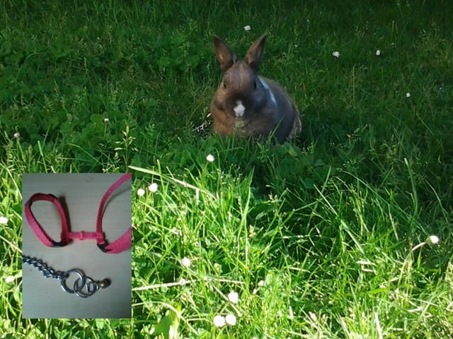 A la veille du jour où un chaton va faire son entrée chez nous, je perds mon lapin : laisse toujours au même endroit, harnais enlevé sans ses dents, pleins de poils de retrouver près du grand sapin... Résultat disparition de Panpan, et pas faute de l'avoir chercher, de 13h30 à 17h à chercher sans jamais m'arrêter, ensuite un peu moins, puis débroussailleuse dans les grandes haies TOUT ! On a tout fait jusqu'à 21h30.... On a mis sa nourriture sous un sapin dans lequel il allait souvent se réfugier quand il coupait la laisse. Ce matin je me lève, je vais direct dehors, rien à bougé... J'ai appris qu'on a vu une chatte sauvage( impossible à toucher) donner à mangé à ses petits d'environ 3 mois ou plus, c'était un lapin... défiguré donc on ne sait pas (mais on se doute :'(. )