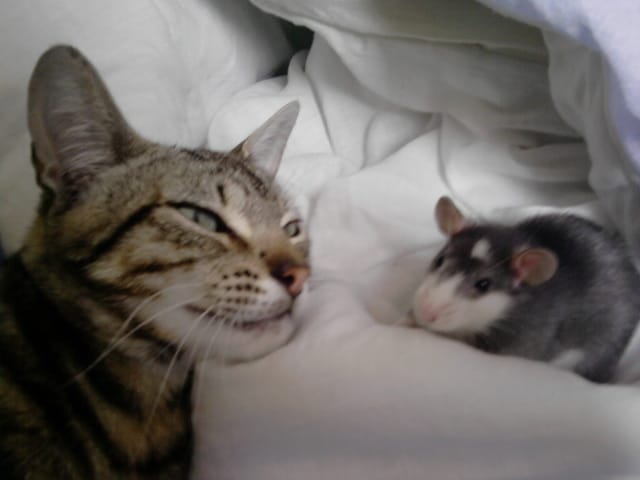Je suis fière qu'elle soit encore là d'autant plus que ça a été mon premier rat et mon coup de foudre sur elle. Mais dans cette journée de joie, j'ai quand même quelque appréension car un an de plus= 1 an de moin et un rat vie max 3 ans :'(. J'espère qu'elle vivra plus longtemps ma petite speedouille.