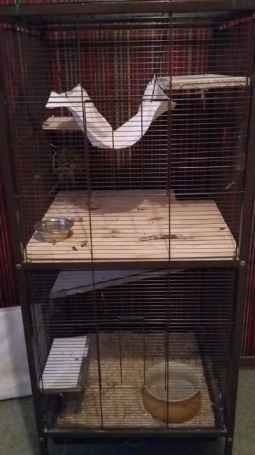 Coucou,j en ai 2 dans une tres grande cage avec un "1er étage" ils dorment toujours en bas en dessous d une petite planchette qui appartient a la cage.