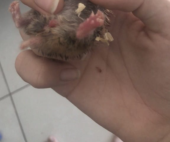 Bonjour, je viens vers vous car j’ai un problème avec mon hamster c’est une femelle elle n’a que 3 mois et je l’es acheter il y’a 2 semaine dans une animalerie, au début elle était très joyeuse courait et creuser, un jour je l’es sorti de sa cage pour lui faire des caresses elle l’a marché sur le sol et tout d’un coup une tache rouge c’est t’ai du sang qu’il lui est sorti de ces parti génital puis quelques heures après elle boiter ( ne marchait pas droit ) il me semble qu’elle à la pâte de devant cassé puis après la nuit qui est passé le lendemain vers 15 heure je la sort de sa cage et je vois que ces pâtes on grossi, elle sont rouge et mon hamster n’arrive plus à bouger c’est pâtes donc elle n’arrive plus à courir et à du mal à marcher elle à les 2 pâtes devant qui sont gonflés et une à l’arrière puis après je l’es approcher de son eau pour qu’elle puisse boire et puis elle a sorti du sang de ses parti génital après avoir bus puis après du liquide marron par son arrière tout sa en seulement quelques heure et maintenant c’est comme si elle était paralysé car à cause que ses pâtes qui en grossi du coup elle à du mal à ce déplacer et même à manger donc c’est vraiment problématique du coup le mieux à faire je pense que sa serait de lenmener chez le vétérinaire le plus rapidement, dites moi vos conseils, ce que vous pensez ce qu’elle à et si elle va sont sortir, sa me fait vraiment mal au cœur 😔😢 elle n’a que 3 mois et c’est t’ai pour mon anniversaire que je l’ai eu 😔...