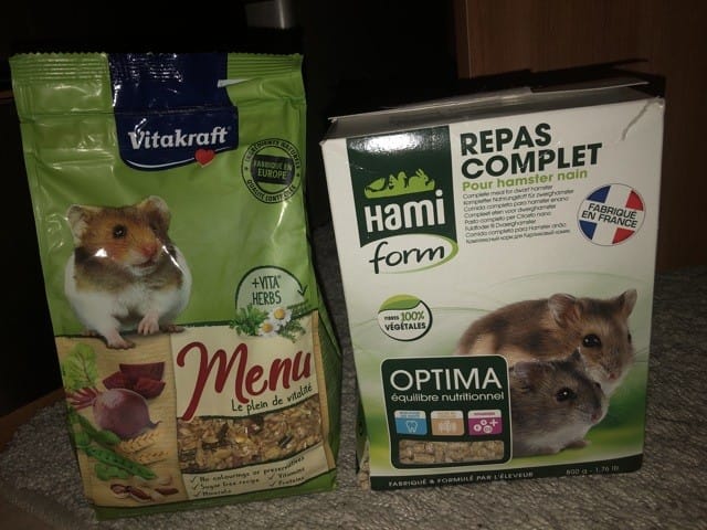 Pour sa nourriture en tout premier je lui donnais ce que m’avait conseiller le vendeur, (le paquet de droite) mais j’ai vu qu’il n’aimait pas du coup j’ai changer et je lui ai donner le paquet de gauche, j’ai changé son alimentation progressivement pour qu’il évite là diarrhée. Il a l’aire d’apprécier.