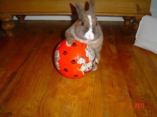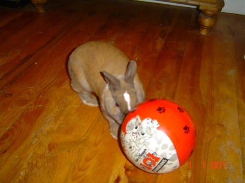 les lapins adorent jouer avec un ballon, le pousser, tourner autour, et si ils en ont plusieurs : réunir le troupeau et s'amuser encore plus ^^