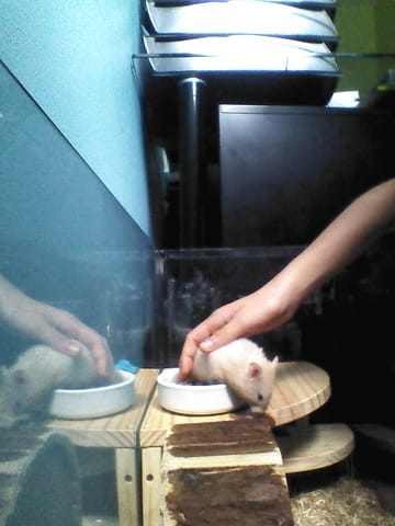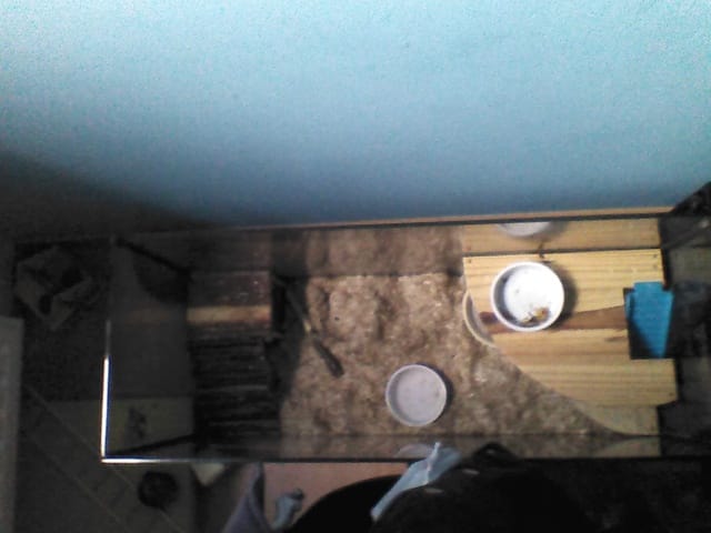 Voila la premier photo c'est une photo de sa cage juste avant de la changer donc il n'y a pas tout dans la cage d'ailleurs vous pouvez remarquer qu'il n'y a pas de roue bref voilà ;)