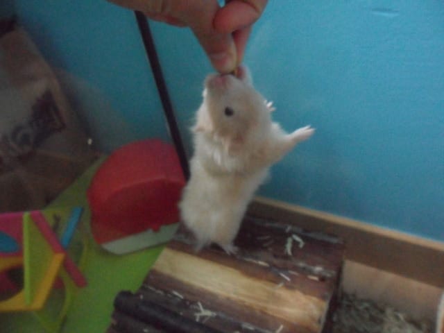 J'ai réussie a la portée ! Elle est toute douce et reste calme dans ma main enfin calme c'est un bien grand mot ! :p