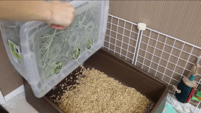 Et aussi pour le foin , j'ai vu que on pouvait prendre des bacs à rangement, découper des cercles et mettre le foin et le bac devra accroché verticalement au grillage près du bac á litière, bonne idée ou pas?