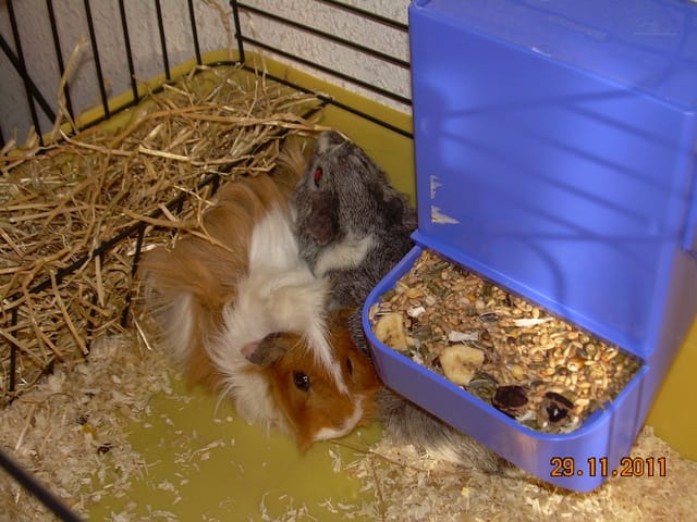 Et comme les autres wamiz l'on dit, du foin tout les jours c'est trés important car sa leur permet de se limer les dents (je prend aussi des batonnets verts de légumes pour la même raison ou du pain dur de temps en temps). POur le foin évite celui de supermarché, d'ailleur si tu habitues tes puces au foin BIo elle ne voudront plus rien d'autre et se jeteront dessus !