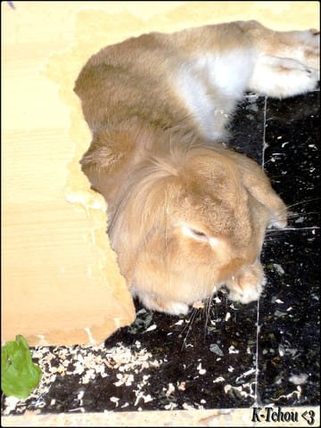 Voila ma lapine a Moi , Elle s'appelle K-tchou , elle a 1 ans , elle est née le 7 mars , c'est un lapin nain bélier ( mes preferer :D )