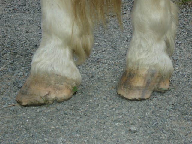 n'est pas ferait au patte avant, une des patte arrière n'a plus le fer mais a encore les clous et l'autre a les clous et le fer mais il a le sabot abimé.