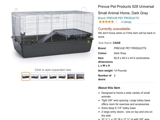Lapinou et autre, je suis à l’étranger en ce moment alors je ne peux pas vous dire maintenant les dimensions de ma cage mais je crois que j’ai la cage ci-dessous. Convient-elle ?
