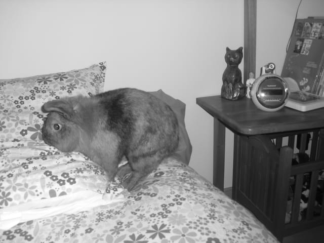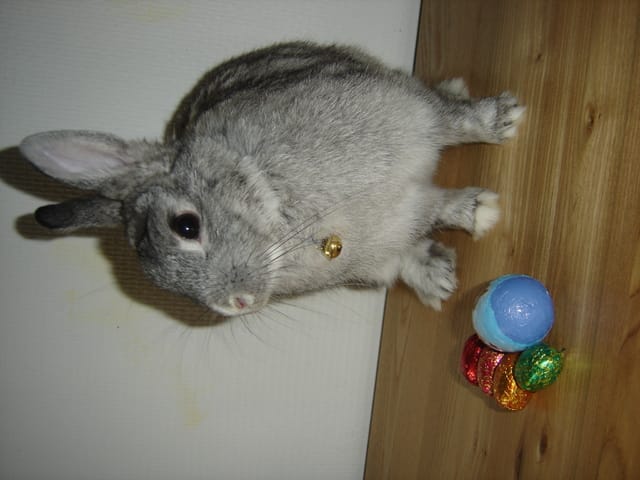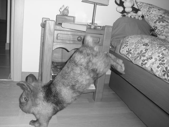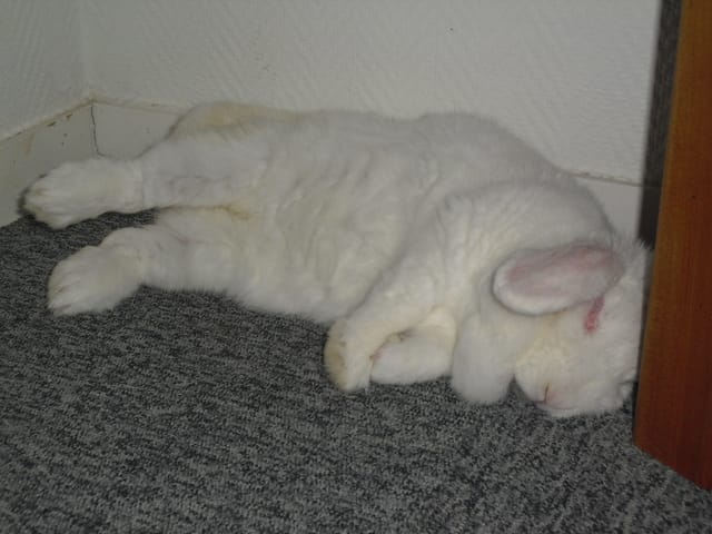 je vais voir s'il y a des photos de Chantilly, elle lui ressemblait à ton lapinou sauf qu'elle était albinos (donc entierrement blanche).