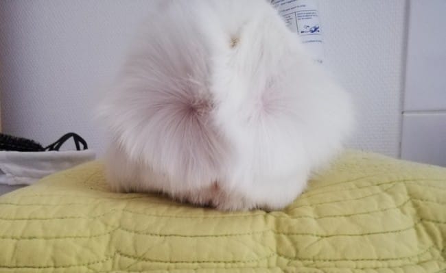 Maintenant,vais faire les yeux de Champagne et changer le bac sanitaire de Fadiese,le lapin.