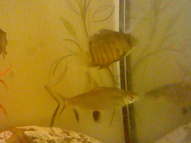 l'aquarium est un 250 litre il contient bcp de poisson et j'ai du rajouter des plante tout a l'heure car il n'y avait plus rien et mon chats ma chipé mon requin et d'autre poison donc mon gourami d'afrique, un de mes ozarus, une platies . Pendant que je suis partit chercher de l'herbe pour ma lapine et déposer le travail au collège