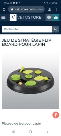 Merci, un jour j'ai essayé de mettre dans un boite en carton avec des gros trous du foin que mon lapin adore et lui, ce qu'il a fait, il a retourné le carton et il a mangé dedans comme dans une gamelle!!!😌