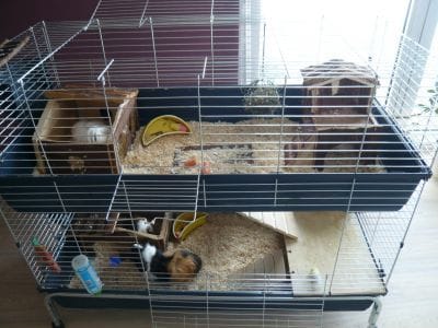 De plus les chons aiment bien avoir une maison avec un toit plat pour pouvoir y monter et y descendre comme bon leur semble , Le cochon d'inde n'est pas un grimpeur mais aime jouer et la cage que je vais leurs offrir , leur offre la place suffisante pour s'amuser .
