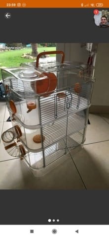 N'ayant aucun équipement chez moi pour le moment, j'ai vu sur le bon coin de superbes cages pour hamster, grandes et séparées avec des petits tuyaux, me genre de cages typiques de Hamsters.