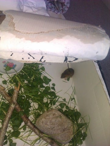 Enfin bref je l'ai laissé tranquille mais je suis revenu une heure après et elle était toujorus là et avec cette chaleur j'avais peur qu'elle ne meurt sans eau ni nourriture donc je l'ai mise dans un carton que j'ai refermé pour qu'elle soit presque dans le noir.